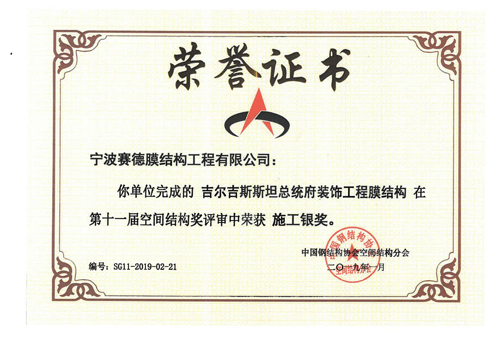 膜結(jié)構(gòu)施工銀獎(jiǎng)